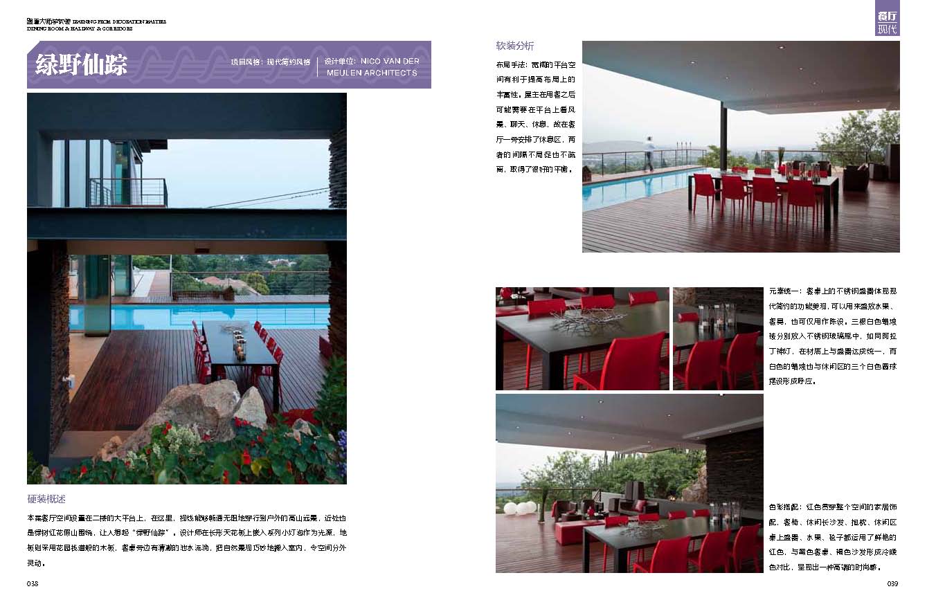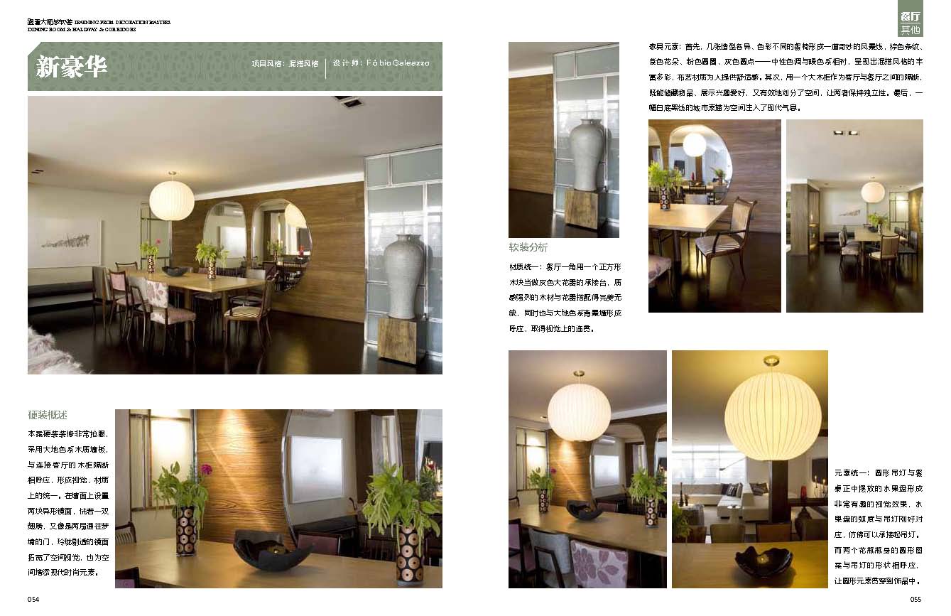 A:其實(shí)就像拍一部電影一樣,我們要做的就是完整的敘事。我相信這樣的話(huà)很好理解。邏輯性、條理性能夠決定一個(gè)項(xiàng)目設(shè)計(jì)的連貫性。我們?cè)O(shè)計(jì)師要做的事情就是如何讓每一個(gè)空間單獨(dú)拿出來(lái)是個(gè)完整的故事,而放到一個(gè)大空間里去,它又能成為這個(gè)大空間不可或缺的章節(jié)。這些可以通過(guò)色彩、造型、材質(zhì)等多個(gè)方面來(lái)達(dá)到,當(dāng)然色彩是最為關(guān)鍵的因素,在色彩沒(méi)有達(dá)到和諧自然的時(shí)候,其他都將是徒勞而生硬的。除了色彩我們還可以在造型和材質(zhì)上予以延續(xù)和連貫,比如《隱》這套作品中餐廳空間的材質(zhì)和造型都可以在客廳和其他空間內(nèi)找到呼應(yīng)。