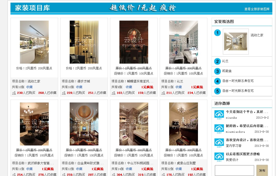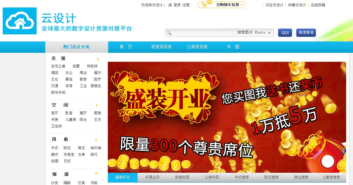 云設計數(shù)字出版平臺目前以鳳凰空間出版的大量室內(nèi)設計方案(已出版、未出版及自行采編的)資源為依托,將室內(nèi)設計及相關作品擴展為“線上工具書”,設計師不僅可以按圖查找項目資料,也可以將喜愛的圖片進行購買下載,作為展示、參考或者學習等之用。云設計數(shù)字出版平臺也將積極搭建良好的設計師們交流圈,作為設計師的您可以利用站內(nèi)的迷你微博和我們互動,也可以以此認識更多設計師共同交流進步。如果您有好的作品,也歡迎您把稿件投給我們,如果采用或刊用,將有獎勵的哦!