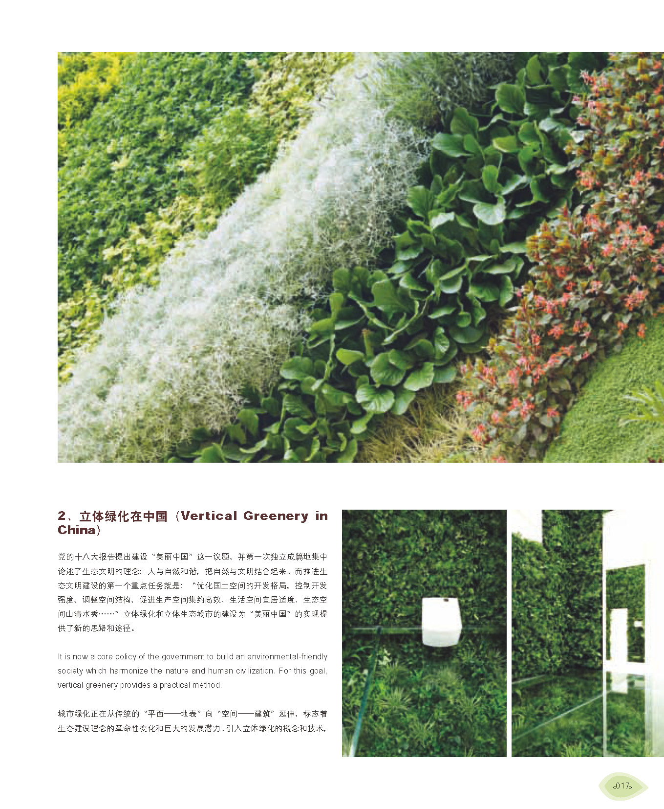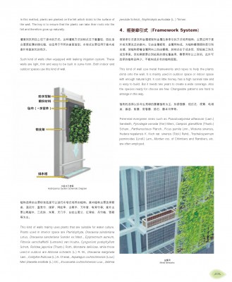 不同于一般只展示立體綠化案例的圖冊(cè)書籍,《垂直綠化》更像一本具有掃盲性、實(shí)踐指導(dǎo)性意義的形式活潑、語(yǔ)言生動(dòng)的“教科書”,它展示了大量專業(yè)知識(shí)與著名設(shè)計(jì)師的實(shí)踐經(jīng)驗(yàn)。書中開篇即以國(guó)內(nèi)垂直綠化先行者趙聆汐女士傳授經(jīng)驗(yàn)與心得為綜述篇章,系統(tǒng)而全面地展示垂直綠化的相關(guān)知識(shí)并傳授寶貴的植物配置經(jīng)驗(yàn)。其后根據(jù)常見的種植技術(shù)分類,詳述了50多個(gè)國(guó)內(nèi)外先進(jìn)而優(yōu)秀的垂直綠化案例。案例類型涵蓋綜合型建筑表皮、住宅表皮、門庭、花架、棚架、欄桿、室內(nèi)墻面等, 圖紙內(nèi)容清晰,設(shè)計(jì)信息詳盡,更有介紹垂直綠化系統(tǒng)的組配技巧、植物配置的經(jīng)驗(yàn)與技巧。該書最難能可貴的地方在于其案例緊密關(guān)聯(lián)可持續(xù)發(fā)展戰(zhàn)略,呈現(xiàn)最巧妙的循環(huán)回路綠化裝置和生態(tài)面板裝置,具有極高的可觀性。
