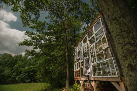 想要做到在室內(nèi)不受限制地感受陽光的洗禮,房屋墻體的限制是一大阻礙,因此他們將面朝湖的房屋正面改由形形色色的舊窗戶拼接而成。經(jīng)過數(shù)月的體力勞動和省吃儉用之后,成品終于出爐,雖然整個房子只花了大概500美元建成,窗戶略舊,室內(nèi)的墻面也和打了無數(shù)補丁一樣,與傳統(tǒng)意義上的度假屋相去甚遠(yuǎn),但那份樸素與恬靜正正迎合了這遠(yuǎn)離煩囂的鄉(xiāng)間。