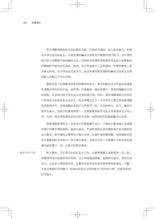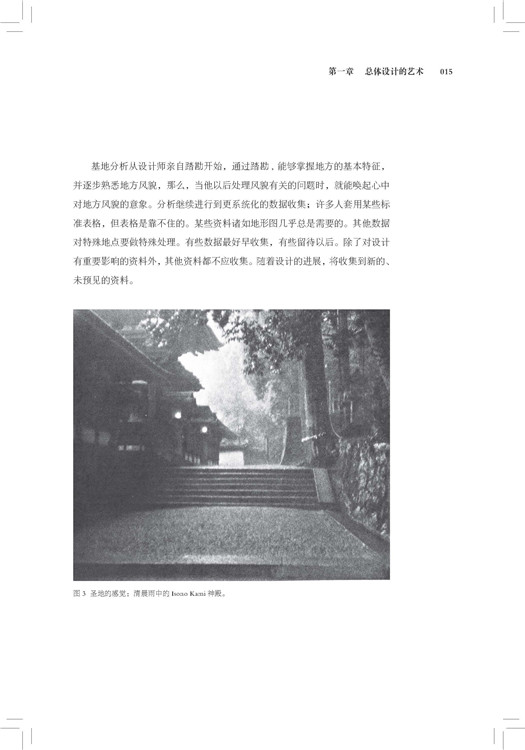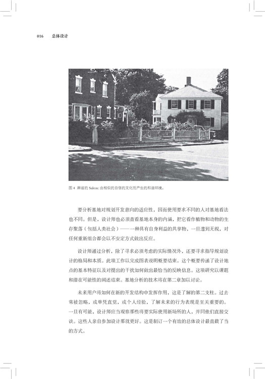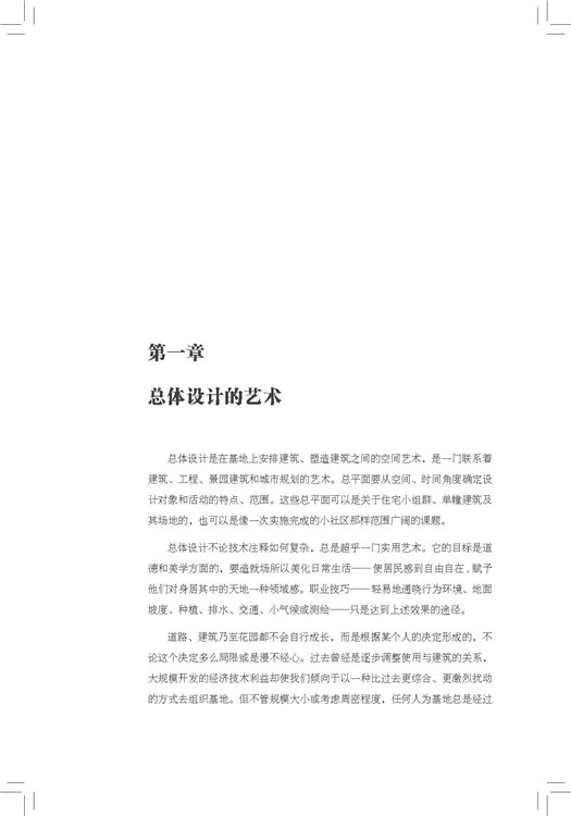 一本古老而細致的入門書,但其中關(guān)于設計的全過程以及對基地、行為、景觀、土方及公共管線、社會影響、利益權(quán)衡等,會讓你對一個完整的設計和設計師該盡到的社會責任有更進一步的認識。我們都在把自己當做制圖機器而忽視了設計的本質(zhì)。不管是城市、建筑還是景觀,設計師都應該擔負起更大的社會責任。我們理應而事實上也可以做到各方面的利益權(quán)衡與協(xié)調(diào),那才是設計的本質(zhì)而不是漂亮卻無實際意義的圖面。當然,這本書同時也讓你看到了作為一個合格的設計師你得擁有多少知識沉淀與社會調(diào)查,大部分時間你都是在調(diào)查、學習與修改,從最基本的地形土方到社會意識層面的人文精神。