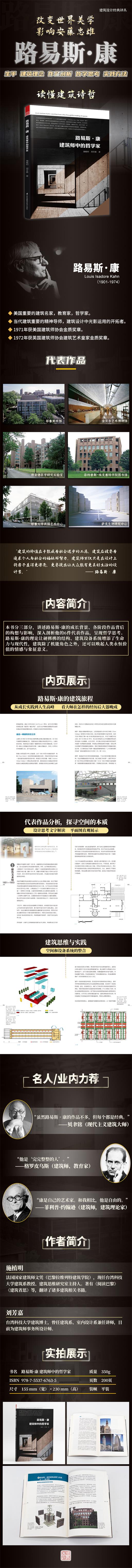 路易斯·康(Louis I. Kahn)是繼賴(lài)特(Frank Lloyd Wright)之后,美國(guó)最具影響力的建筑名家之一。在相對(duì)短暫的建筑生涯中,創(chuàng)造出非常多的傳世之作,完成設(shè)計(jì)作品的優(yōu)質(zhì)率非常驚人。本書(shū)不僅對(duì)路易斯·康的作品進(jìn)行解讀,對(duì)他本人也做了介紹,整本書(shū)由簡(jiǎn)入深,書(shū)籍結(jié)構(gòu)緊湊,非常適合閱讀。本書(shū)分三大部分。第一部分介紹了路易斯·康的成長(zhǎng)背景、各階段作品背后的構(gòu)想與影響。第二部分是路易斯·康六件代表性作品的深入賞析。第三部分是路易斯·康的哲學(xué)思考,他的理論讓硬梆梆的結(jié)構(gòu)、建筑設(shè)備系統(tǒng)增添了生命力與現(xiàn)代性。
