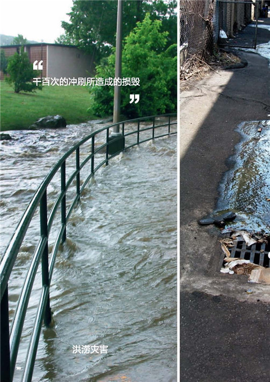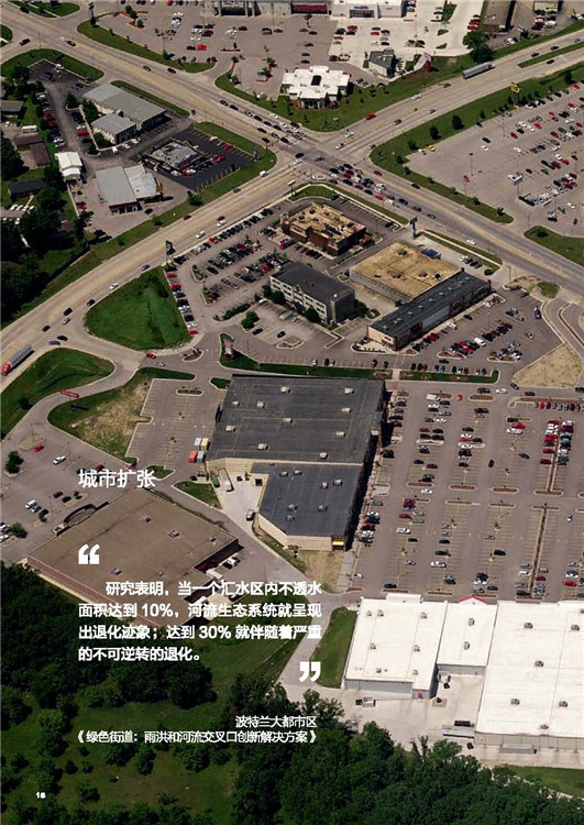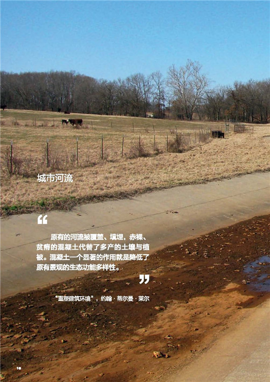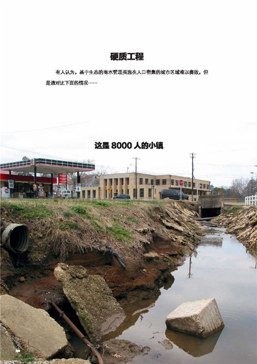 該書(shū)受美國(guó)環(huán)保局的非點(diǎn)源污染計(jì)劃和阿肯色州自然資源委員會(huì)的委托而作,主要內(nèi)容是提出低影響開(kāi)發(fā)框架,從保護(hù)或模擬場(chǎng)地雨水自然循環(huán)過(guò)程入手,著重介紹了如何利用綠色基礎(chǔ)設(shè)施來(lái)分散與吸納雨水、減緩與處理徑流,達(dá)到消除面源污染與降低內(nèi)澇風(fēng)險(xiǎn)的目的。此書(shū)編寫(xiě)于2010年,榮獲了當(dāng)年ASLA 溝通交流類杰出獎(jiǎng)。手冊(cè)的設(shè)計(jì)和研究團(tuán)隊(duì)與美國(guó)國(guó)家機(jī)關(guān)、費(fèi)耶特維爾市、市民環(huán)保團(tuán)體和非營(yíng)利組織合作來(lái)共同開(kāi)發(fā)規(guī)劃模板、守則和最佳實(shí)踐方案,從而促進(jìn)了低影響開(kāi)發(fā)的實(shí)施。