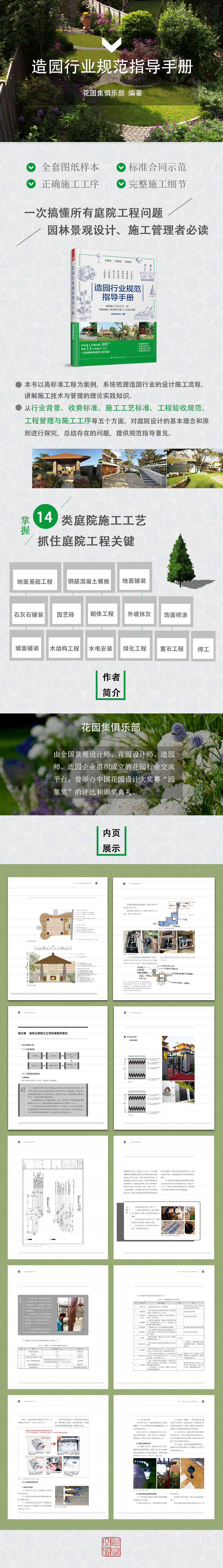 《造園行業(yè)規(guī)范指導(dǎo)手冊(cè)》是以高標(biāo)準(zhǔn)工程定位,為庭院量身而作,提供專業(yè)的規(guī)范意見,講解庭院工程的技巧施工。值得庭院從業(yè)人員人手一本!