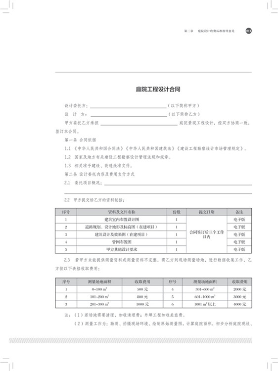 一、設(shè)計(jì)收費(fèi)指導(dǎo)標(biāo)準(zhǔn)(按庭院占地面積計(jì)算) 006