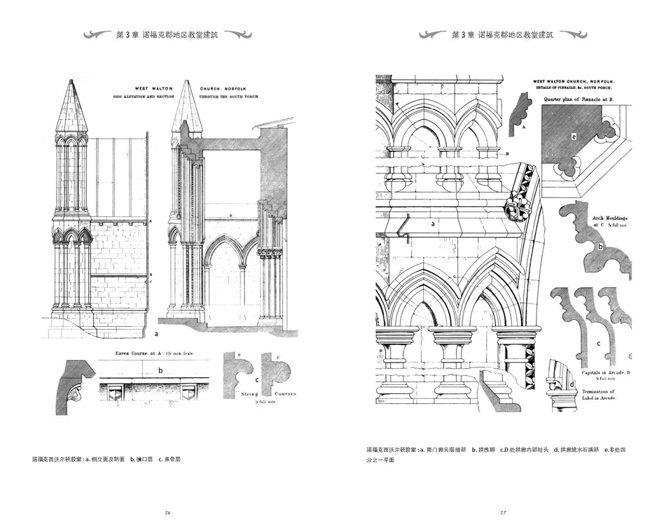 本卷以地區(qū)劃分,共分為約克郡地區(qū)、埃塞克斯郡地區(qū)、諾福克郡地區(qū)、貝弗利地區(qū)、薩塞克斯地區(qū)、北安普敦郡地區(qū)、沃里克郡地區(qū)、薩??丝さ貐^(qū)、索美賽特夏郡地區(qū)、林肯郡地區(qū)、肯特郡地區(qū)、威斯敏斯特地區(qū)、溫徹斯特地區(qū)、以利地區(qū)、諾丁漢郡地區(qū)、威爾斯地區(qū)、劍橋郡地區(qū)等18個章節(jié),對這些地區(qū)的哥特式教堂建筑圖紙進(jìn)行了注釋解析。