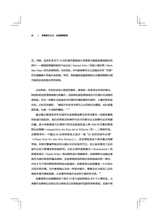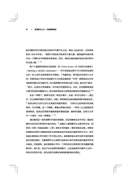 景觀已然成為當(dāng)代城市研究的模型和媒介。這一觀點(diǎn)形成于21 世紀(jì)初“景觀都市主義”(landscape urbanism)的實(shí)踐和理論領(lǐng)域。本書堪稱該研究領(lǐng)域的第一本專題論著,在廣泛的歷史、理論以及文化背景條件下探究景觀都市主義產(chǎn)生的根源。