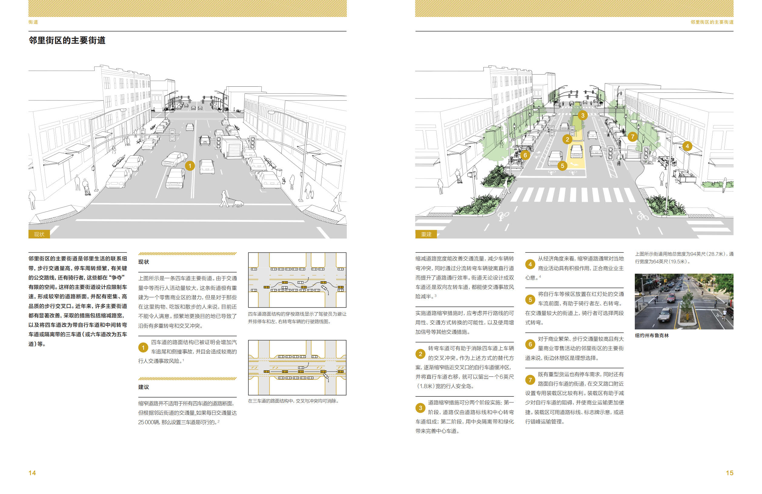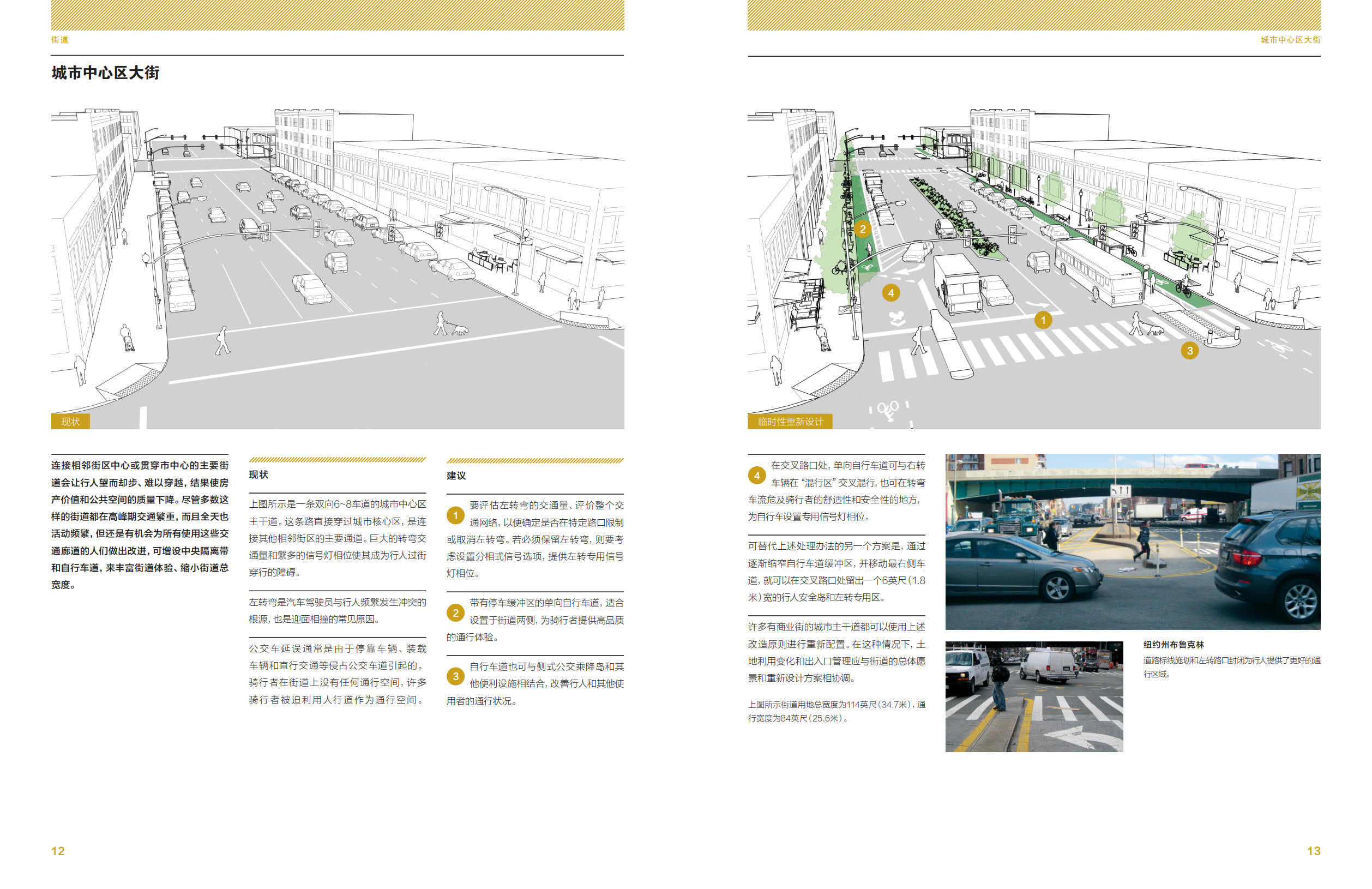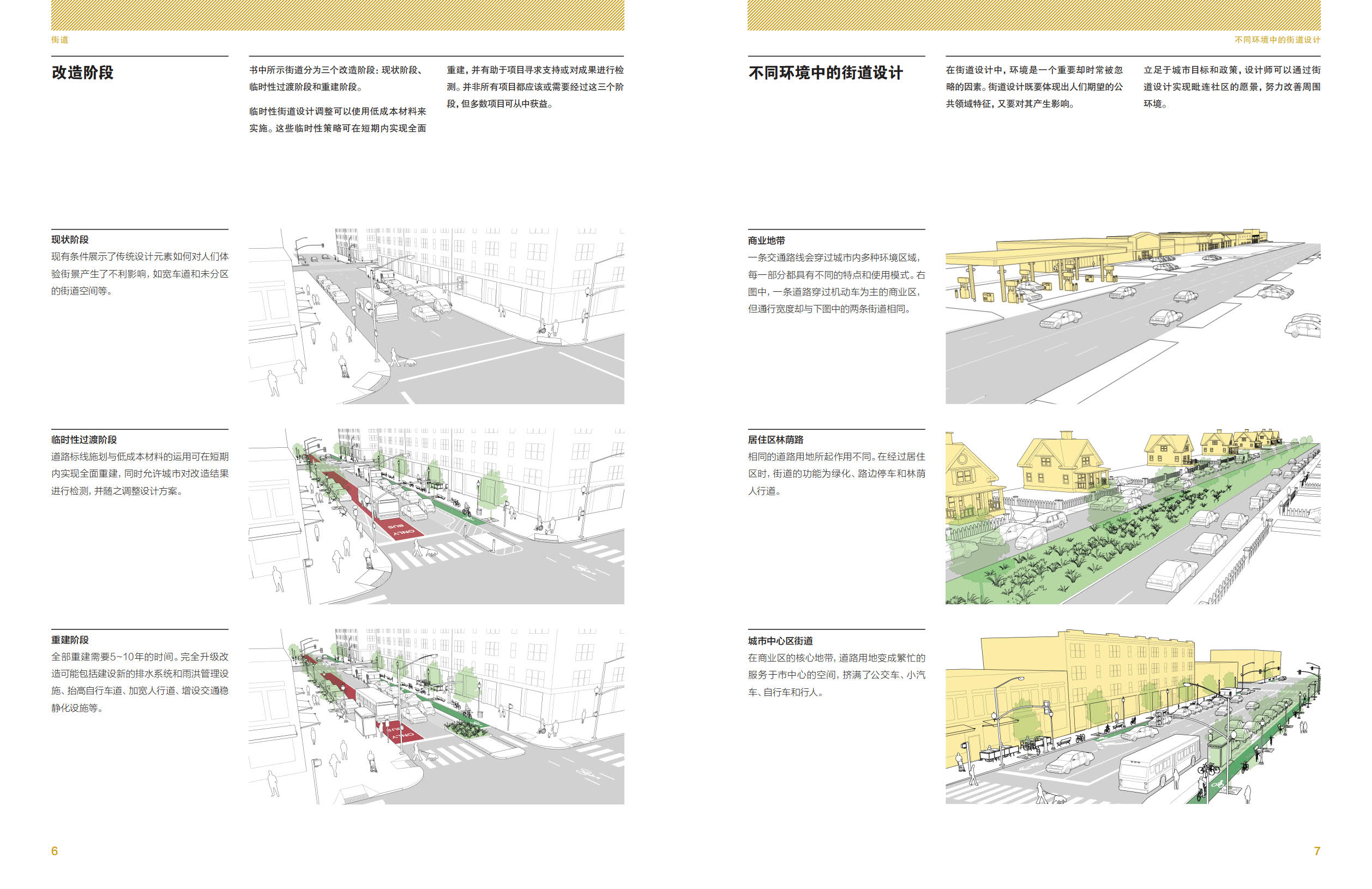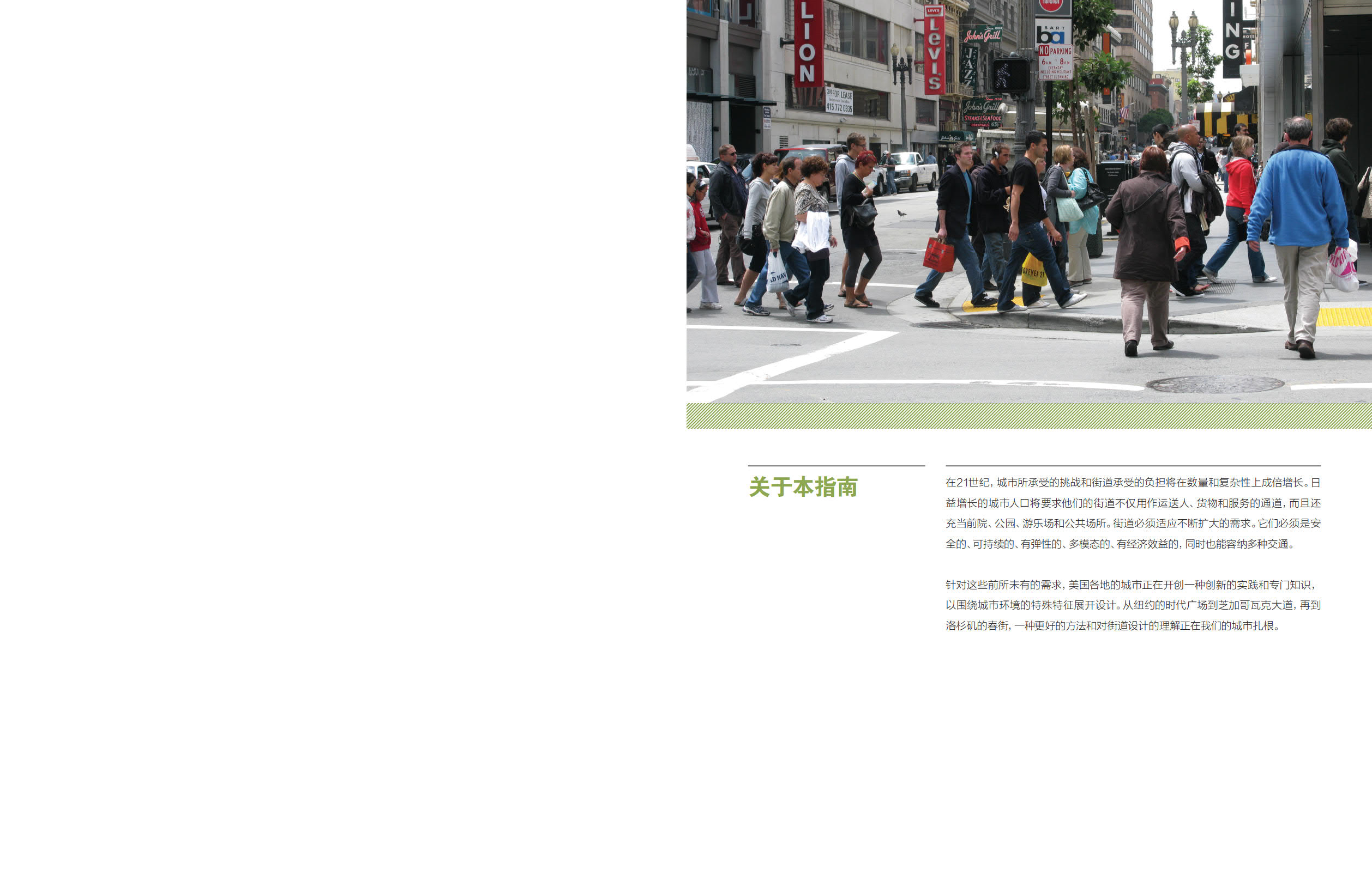 《城市街道設(shè)計(jì)指南》概述了城市街道設(shè)計(jì)的各種原則,使街道安全而富有魅力,吸引人們?cè)诔鞘协h(huán)境中步行、購(gòu)物、停留以及駕駛,這些原則旨在創(chuàng)造真正為人所用的城市街道空間。