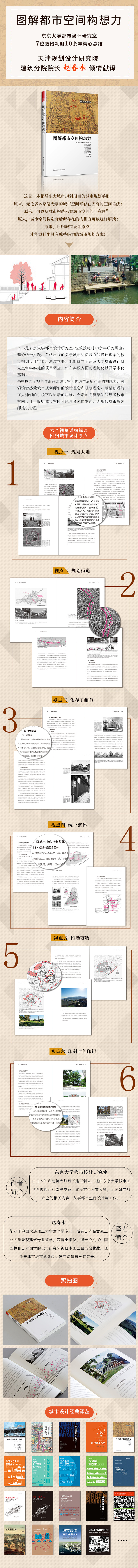 本書是由東京大學(xué)教授西村幸夫率領(lǐng)的東京大學(xué)都市設(shè)計(jì)研究室的中島直人、永瀨節(jié)治。中島伸、野原卓、窪田亞矢、阿部大輔6位教授,耗時(shí)10年總結(jié)出來的關(guān)于城市空間規(guī)劃和設(shè)計(jì)理念的圖書。通過“規(guī)劃大地”“ 規(guī)劃街道”“ 依存于細(xì)節(jié)”“統(tǒng)一整體”“推動(dòng)萬物”“印刻時(shí)間印記”六個(gè)視角詳細(xì)解讀都市空間的構(gòu)想力,為現(xiàn)代城市規(guī)劃師提供借鑒。