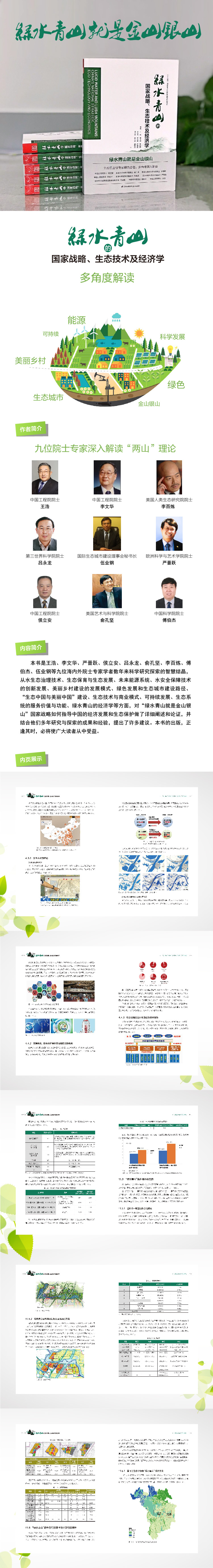 本書(shū)是王浩、李文華、嚴(yán)晉躍、侯立安、呂永龍、俞孔堅(jiān)、李百煉、傅伯杰、伍業(yè)鋼九位海內(nèi)外院士專(zhuān)家學(xué)者數(shù)年來(lái)科學(xué)研究探索的智慧結(jié)晶,從水生態(tài)治理技術(shù)、生態(tài)保育與生態(tài)發(fā)展、未來(lái)能源系統(tǒng)、水安全保障技術(shù)的創(chuàng)新發(fā)展、美麗鄉(xiāng)村建設(shè)的發(fā)展模式、綠色發(fā)展和生態(tài)城市建設(shè)路徑、“生態(tài)中國(guó)與美麗中國(guó)”建設(shè)、生態(tài)技術(shù)與商業(yè)模式、可持續(xù)發(fā)展、生態(tài)系統(tǒng)的服務(wù)價(jià)值與功能、綠水青山的經(jīng)濟(jì)學(xué)等方面,對(duì)“綠水青山就是金山銀山”國(guó)家戰(zhàn)略如何指導(dǎo)中國(guó)的經(jīng)濟(jì)發(fā)展和生態(tài)保護(hù)做了詳細(xì)闡述和論證,并結(jié)合他們多年研究與探索的成果和經(jīng)驗(yàn),提出了許多建議。本書(shū)的出版,正逢其時(shí),必將使廣大讀者從中受益。