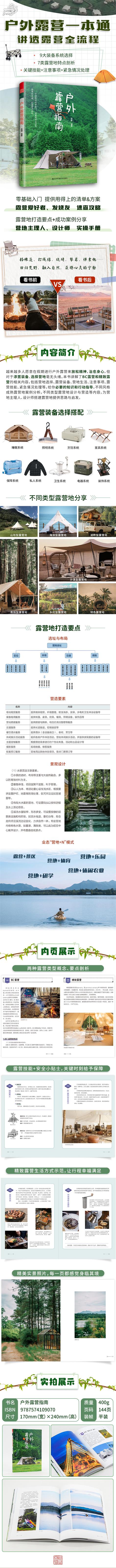 戶外露營(yíng)聽(tīng)上去很美,但一想到要添置裝備、選擇營(yíng)地就會(huì)感到?jīng)]有頭緒。無(wú)論是計(jì)劃出游,還是只想一邊美美地躺在沙發(fā)上,一邊瀏覽國(guó)內(nèi)各具特色的戶外露營(yíng)地,這本精心策劃的書(shū)籍一定是您的靈感來(lái)源。本書(shū)介紹野外露營(yíng)和精致露營(yíng)的相關(guān)內(nèi)容,包括營(yíng)地的選擇、露營(yíng)裝備、營(yíng)地生活、露營(yíng)技能、緊急情況的處理等。作者結(jié)合露營(yíng)現(xiàn)狀,將露營(yíng)面對(duì)的現(xiàn)實(shí)和可能遇到的問(wèn)題囊括書(shū)中,力爭(zhēng)讓讀者學(xué)有所用,讓準(zhǔn)備徒步旅游或要成為業(yè)余徒步愛(ài)好者的朋友們,能夠一冊(cè)在手,盡可得到實(shí)踐的認(rèn)知和行動(dòng)的指導(dǎo)。
