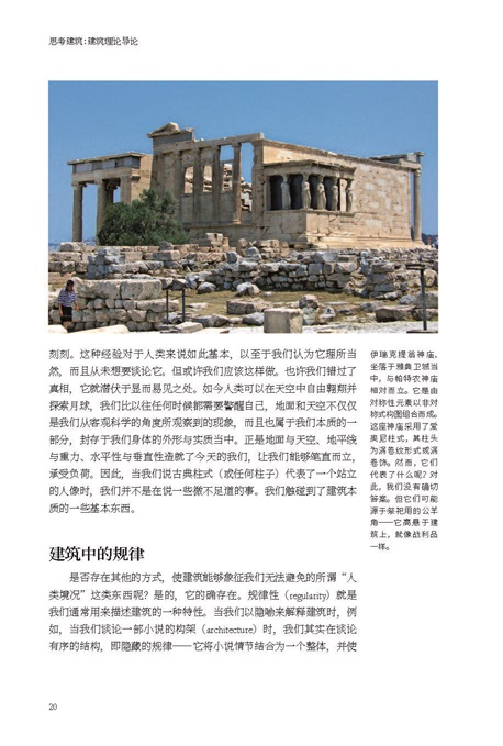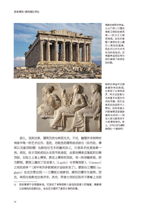 本書以簡潔明了的方式介紹了當(dāng)下的建筑思想,涵蓋了眾多關(guān)鍵的建筑理論概念。書中分為再現(xiàn)、語言、形式、空間、真實(shí)、自然、歷史、城市等八章的內(nèi)容,采用循序漸進(jìn)的敘述方式,將關(guān)注點(diǎn)放在思想層面,而非僅聚焦于理論背后的理論家和哲學(xué)家們。從帕特農(nóng)神廟到高技派建筑,從柏拉圖到勒·柯布西耶、索緒爾,對于學(xué)生、建筑從業(yè)者及任何對建筑理論懷有興趣的普通讀者來說,閱讀本書,都可以較快理解建筑文化的復(fù)雜性,豐富相關(guān)知識,促進(jìn)對建筑的思考,步入建筑理論之門。