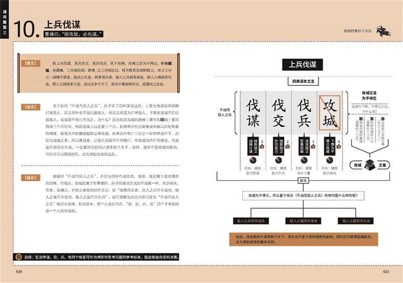 每篇包含原文、譯文、啟示、總結(jié),和思維模型,五大版塊,和曹操的總結(jié)批注。解讀詳盡,圖形精煉,輕松好讀,可快速領(lǐng)悟,提升認(rèn)知。