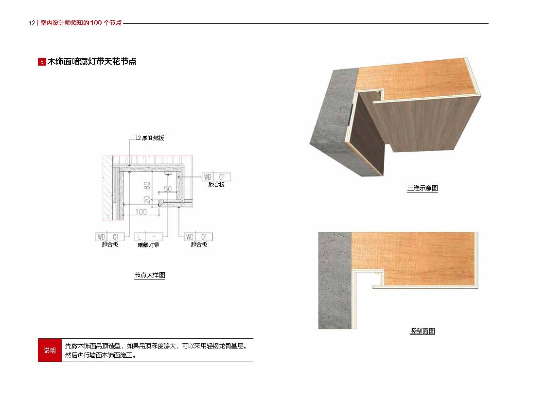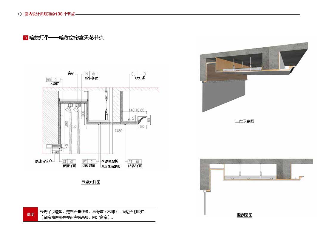 本書是室內(nèi)設(shè)計(jì)與施工領(lǐng)域的實(shí)用指南,專為新入行的設(shè)計(jì)師和技術(shù)人員量身打造,旨在幫助他們迅速掌握zui新的施工圖表達(dá)技巧,從而提Sheng學(xué)習(xí)效率和工作質(zhì)量。全書共分為七章,每一章都聚焦于室內(nèi)設(shè)計(jì)中的關(guān)鍵節(jié)點(diǎn),包括天花、地坪、墻身、門套、屏風(fēng)、柱子以及踢腳線節(jié)點(diǎn),確保設(shè)計(jì)師能夠Quan面了解和掌握這些重要部分的施工細(xì)節(jié)。書中不Jin詳細(xì)講解了尺寸標(biāo)注的規(guī)則和方法,還提供了大量常用節(jié)點(diǎn)尺寸的清晰概念,使設(shè)計(jì)師能夠準(zhǔn)確地表達(dá)設(shè)計(jì)意圖。通過豐富的內(nèi)部構(gòu)造圖和三維示意圖,本書幫助設(shè)計(jì)師深入理解裝飾完成面和現(xiàn)場(chǎng)工藝,確保設(shè)計(jì)的Jing確性和施工的可行性。為了進(jìn)一步支持設(shè)計(jì)師的職業(yè)發(fā)展,本書還整理了zui新的施工圖節(jié)點(diǎn)工藝,并提供了suo有節(jié)點(diǎn)的源文件,方便讀者在實(shí)際工作中直接應(yīng)用和修改,滿足不同項(xiàng)目的需求。無論是學(xué)習(xí)還是實(shí)踐,本書都是室內(nèi)設(shè)計(jì)師和技術(shù)人員不可或缺的參考資料。