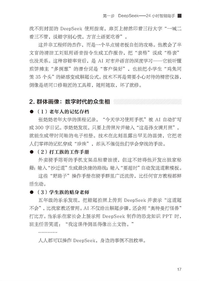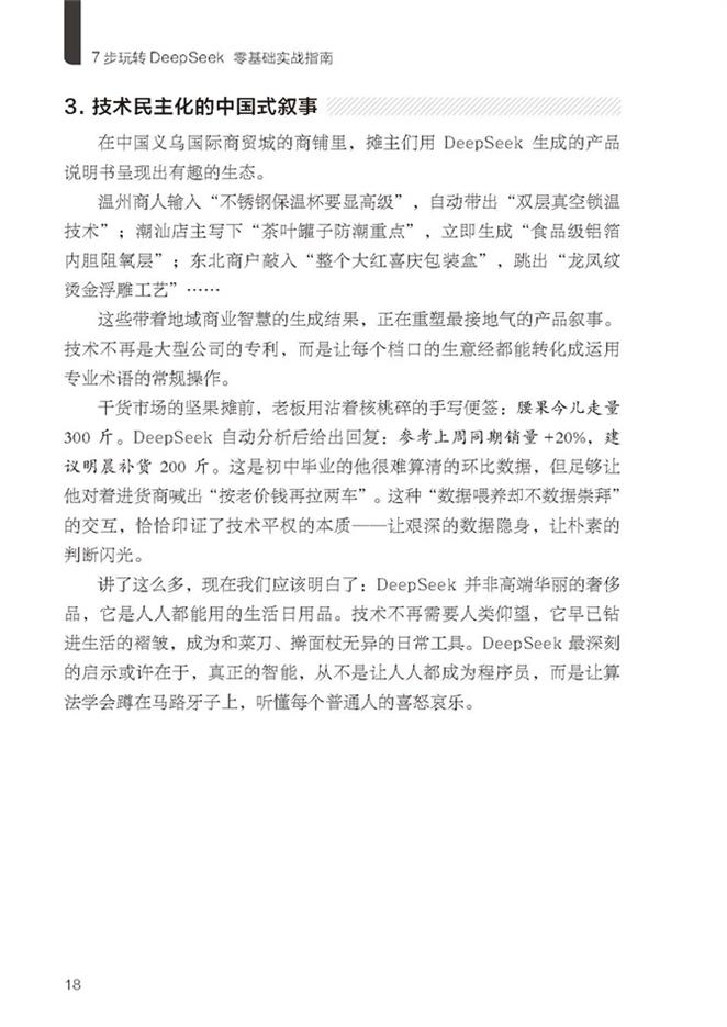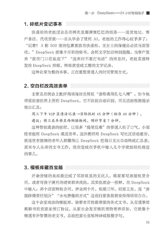 書中的“角色扮演提問法”“連續(xù)追問技巧”等進(jìn)階秘籍,將助你突破普通用戶的認(rèn)知邊界,成為真正的AI協(xié)作高手。翻開本書,讓DeepSeek智能助手為你每天多賺2小時(shí)!