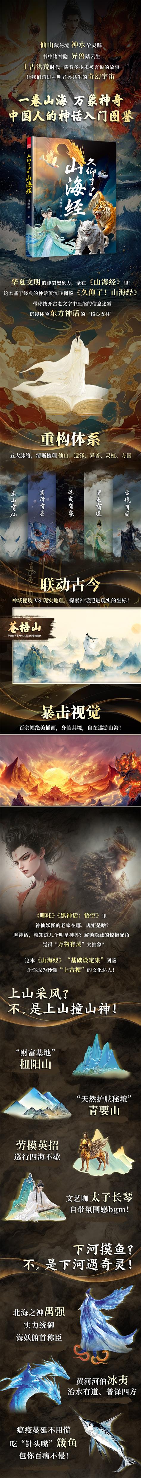 它精選五章經典內容,以“圖鑒”形式梳理仙山、神獸、方國等核心元素,既保留原文的古樸神韻,又用現(xiàn)代視角解讀背后的文化隱喻——西王母的威嚴、共工觸山的悲壯、扶桑與若木的日月神話,所有這些散落在古籍中的光怪陸離,都化作可觸可感的生動圖景。