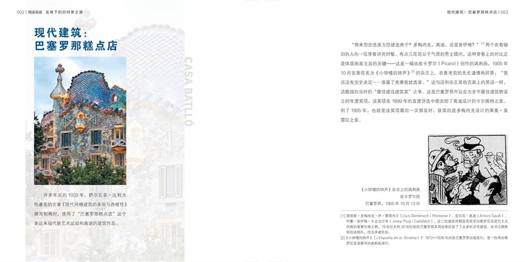 本書不僅是一部關(guān)于高迪建筑美學(xué)的專著,更記錄了20世紀(jì)初巴塞羅那“金蘋果之爭”——一場由巴特羅之家、阿馬特耶之家與萊奧·莫雷拉之家共同演繹的建筑史詩。在工業(yè)革命催生的財富浪潮中,格拉西亞大道的富豪們以建筑為勛章,三大現(xiàn)代主義建筑師(高迪、普伊格、蒙塔內(nèi)爾)在此展開無聲較量,宛如希臘神話中爭奪金蘋果的故事。