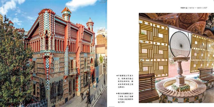 特別珍貴的是,書中收錄了大量鮮為人知的項目資料,包括古埃爾工業(yè)村教堂地下室等較少被關(guān)注的作品,以及多個未實現(xiàn)的設(shè)計方案。全書配以專業(yè)建筑師撰寫的詳細解說,配合精心編排的高清圖片,從整體結(jié)構(gòu)到細部裝飾,多視角展示高迪作品中流動的曲線、自然的靈感與精湛的工藝。