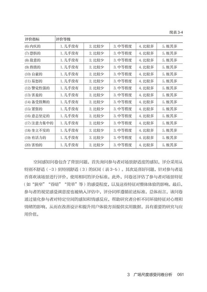 《人性化廣場設計:人因工程實踐》這本書主要探討:怎樣協(xié)調廣場尺度和周圍建筑高度的關系,能讓人感到更舒適、更愿意在廣場空間停留。作者運用虛擬現實技術模擬出不同尺度的廣場場景,并通過情緒問卷、腦電波、皮膚電反應、光電容積脈搏波等多種方法,實時測量人們在其中的心理反應與生理反應。基于這些實驗數據,本書蕞終提出了一系列以人體真實感受為依據的設計策略,旨在幫助打造更舒適、更具吸引力的公共廣場,也為相關領域的研究提供了新的思路。