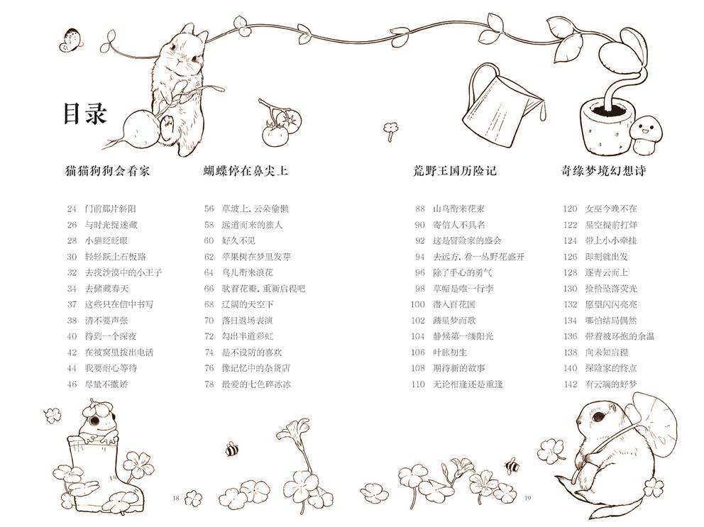 每個章節(jié)搭配相應主題的靈動詩歌,為貓的慵懶、蝴蝶的翩躚、荒野的冒險與夢境的綺麗注入文字靈魂。