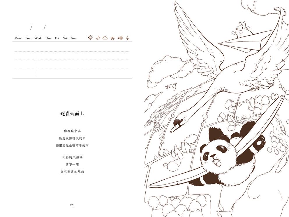 圖書采用高品質(zhì)特種紙紙張,適合彩色鉛筆、水彩等多種工具,填色體驗流暢,可兼顧手寫文字。同時選用圓脊精裝設(shè)計,可平攤,為讀者提供舒適的填色與文字體驗。