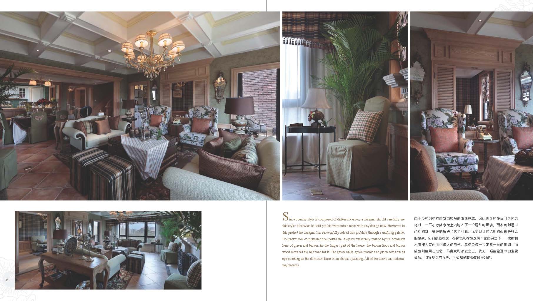 《戀戀鄉(xiāng)村風(fēng)》一書(shū)收集了幾十個(gè)來(lái)自歐美的鄉(xiāng)村風(fēng)格案例,其中不乏像Timothy Corrigan、Jamie Drake和Kelley Proxmire這樣知名的設(shè)計(jì)師和獲獎(jiǎng)大戶,案例均為原汁原味的鄉(xiāng)村風(fēng)格別墅和豪宅,裝飾細(xì)節(jié)多而且精細(xì)。本書(shū)按照“英式鄉(xiāng)村”、“美式鄉(xiāng)村”、“法式鄉(xiāng)村”和“現(xiàn)代鄉(xiāng)村”四種鄉(xiāng)村風(fēng)格的分支制作了案例索引,并且每個(gè)案例都有特征說(shuō)明。