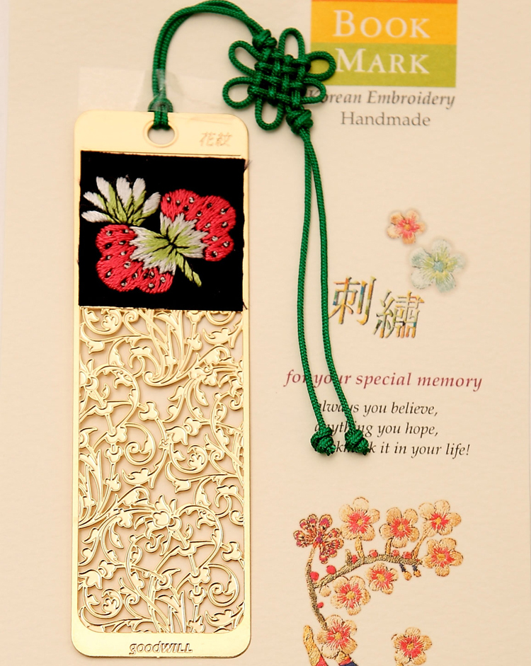 韓國Goodwill書簽采用24K鍍金,造型獨特多變,刺繡、鏤空打造,通透細致,薄如蟬翼,精細質(zhì)感。花、葉、昆蟲等鮮活的姿態(tài)與生動的顏色被精美地定格在書簽里,讓您在書香四溢中呼吸自然的氣息,陪你在歲月中長久的感動。