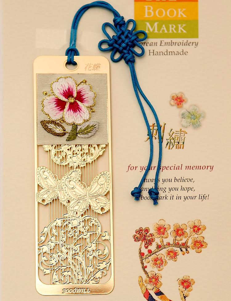 韓國Goodwill書簽采用24K鍍金,造型獨(dú)特多變,刺繡、鏤空打造,通透細(xì)致,薄如蟬翼,精細(xì)質(zhì)感。花、葉、昆蟲等鮮活的姿態(tài)與生動(dòng)的顏色被精美地定格在書簽里,讓您在書香四溢中呼吸自然的氣息,陪你在歲月中長(zhǎng)久的感動(dòng)。